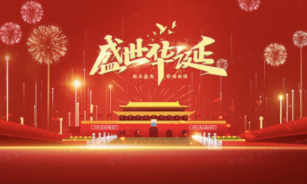 完成伟大民族复兴。庆祝国之強盛,赞贺人民在七十二年建设中创立的历史奇蹟!