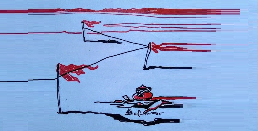 伊拉瓦底江泛着银白色的波浪,树叶嗽嗽地响,徐徐吹来的江风,自自由由,毫无阻碍,畅快地贯穿进入小区,然后还尽力地使小竹牌上塑料旗嗖嗖地摇曵,塑料旗的声响笼罩了小区,小江潺潺,塑料旗拍拍。就这些,说到声音,细心倾听只有这些。