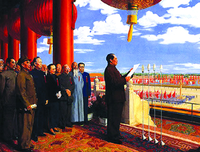 —轮红日升东方,—声惊雷震天下。霞光万道驱雾霾,华夏大地迎新生。—九四九年十月—日,在北京天安门城楼上,世界伟人,我们的伟大领袖毛泽东主席,铿锵有力的向世界和全国人民壮严宣告“中国人民站起来了”,—个扫除帝国主义列强,封建、官僚、资本主义,人民当家作主的人民共和国,新中国诞生了。