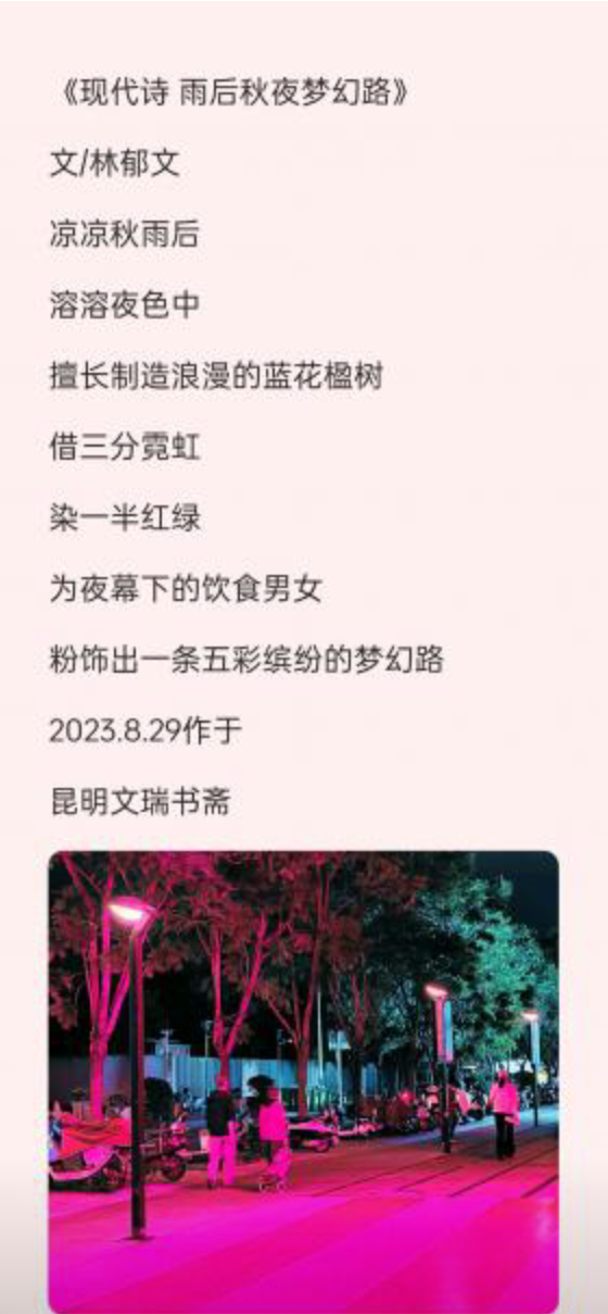 转载请注明:《《现代诗》雨后秋夜梦幻路(林郁文)》 复制链接