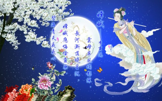 嫦娥后悔寂寞,后悔偷吃灵药。面对碧海蓝天,日夜思念人间。 [2]