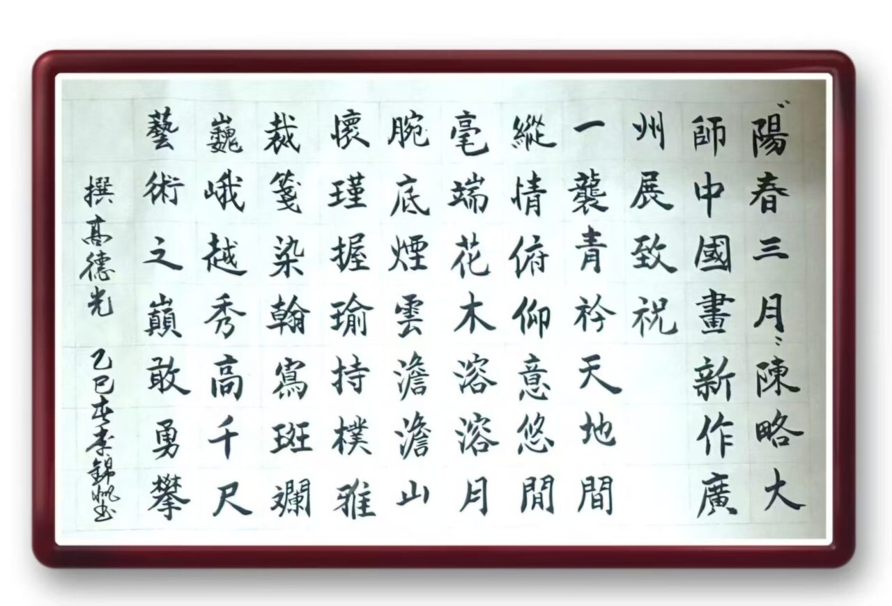 . 復興之路獻嘉謨,軒蓋如雲滙首都。兩會弘開新格局,九州擘劃大藍圖。同商國是輿情奮,共為民生錦繡鋪。議案千條天地換,人間盛世在茲乎! 书法 一〉馮利發二〉李燕軍三〉劉北照四〉茂松五〉周永騰六〉李錦帆七〉羅耀祖八〉李應華九〉莫敬釗十〉黎勝培十一〉阮偉生十二〉岑建平十三〉尤肖松十四〉林德盛 . . . . . . . . . . . . Post...