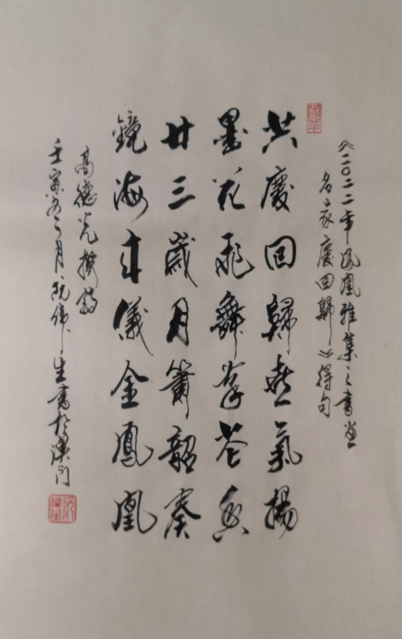 转载请注明:《《2022年鳳凰雅集之書畫名家慶回歸》得句(文/德光,书法/茂松,尤肖松,阮毓明,蔡惠瓊,黃偉華,阮偉生,龔正中)》 复制链接