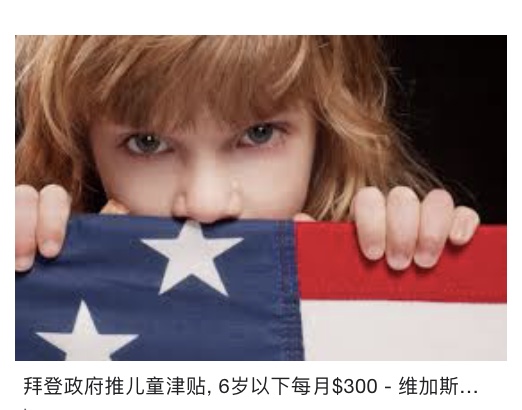 除了獲得拜登團隊支持的國會議員正在推動將「兒童津貼」永久化,據悉,在拜登的「美國家庭計劃」中,還將擴大兒童保育,帶薪休假,學前教育等項目,從法律上來保證擴大並實施兒童保育和女性的帶薪產假。稱這些政策是優先事項,希望解決因COVID-19病毒大流行而暴露出的社會安全網中的缺陷,這些缺陷對勞動力市場中的女性僱員造成了不成比例的影響。原本在第三輪紓困法案中提出,將發放「兒童津貼」一年,即從2021年7月起,發放到2022年6月。據CNBC證實的消息,確定拜登將把「兒童津貼」發放的一年限期延長到2025年,非永久性。在此5年期間,美國家庭每名兒童最多每年可獲得 3,600元,最低3,000元的「兒童津貼」。