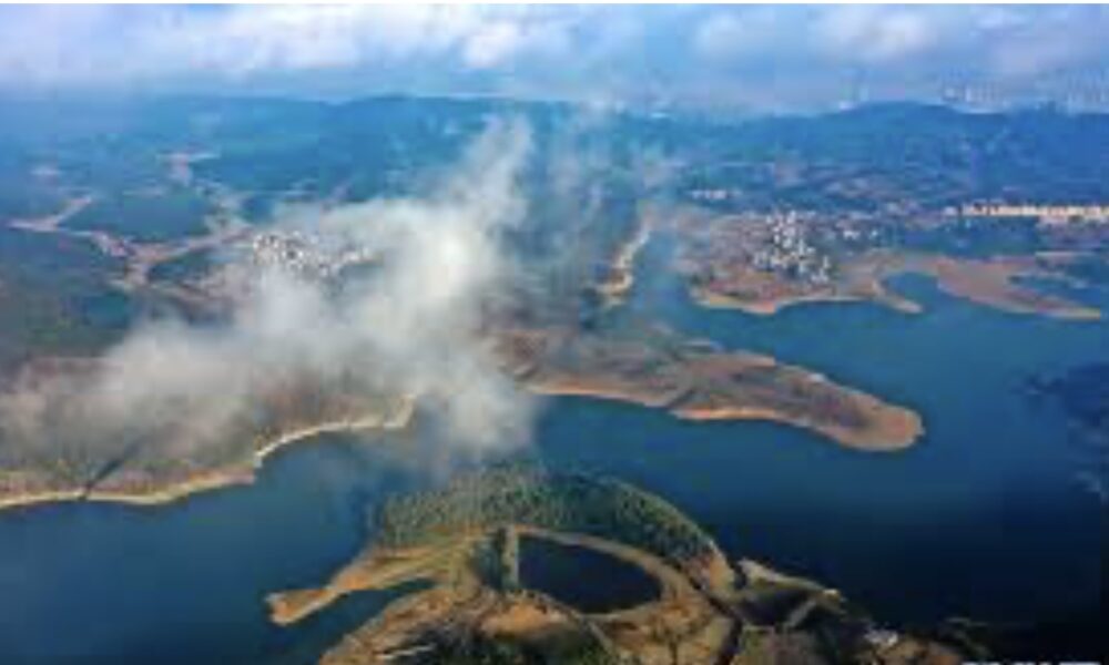 (后注:潇湘水库,座落麒麟区潇湘江中段,离市区仅7公里。兴建于1957.11—1958.11,历时一年建成。今时越近七十载,有历年不断翻新加固,大垻更加雄伟壮观,蓄流愈是烟波浩渺;面貌焕然一新,早已今非昔是。)
