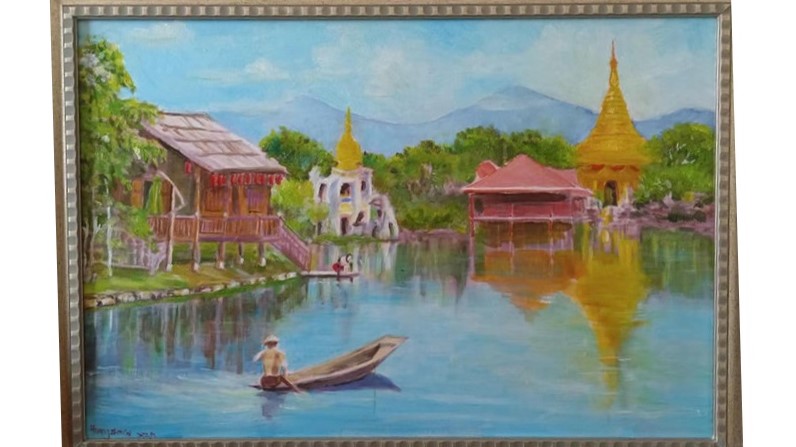 2023.06.05画家黄振才挚友赠送笔者一幅其亲自落笔的缅甸风情油画,赋诗一阙深表谢意。