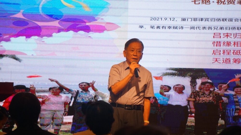 2021.9.12,厦门菲律宾归侨联谊会假厦门华侨大酒店三楼举行第五届理事会换届选举,笔者有幸赋诗一阙代表各兄弟归侨联谊会致辞祝贺。
