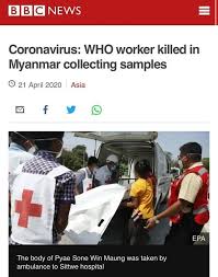 BBC报道截图 据英国BBC新闻21日报道,这名司机名叫Pyae Sone Win Maung,现年28岁,他在若开邦遭遇枪击时驾驶着一辆带有明显联合国标志的车辆。 BBC援引联合国的说法称,近几周来,数十名平民在缅甸武装部队与当地武装组织若开军(Arakan Army)的冲突中丧生。 据BBC报道,缅甸军方以及若开军都否认与该名司机被杀有关。缅甸武装部队发言人Tun Tun Nyi少将表示,他的部队没有理由袭击联合国的车辆,这些人“正在为我们、为我们国家工作”。 对于该司机被杀一事,联合国驻缅甸办事处表示,他们对这名28岁司机的遇害深感悲痛。该机构并未透露哪方要为此事负责。 古特雷斯呼吁对该事件进行全面、透明的调查,并将肇事者绳之以法。 联合国有关方面21日在一份声明中证实,世界卫生组织的一名工作人员在缅甸西部若开邦驾驶一辆载有新冠病毒样本的车辆时被杀害。根据声明,世卫组织的司机当时正乘坐一辆标识清晰的联合国车辆从实兑开往仰光,在卫生和体育部的协助下运送新冠病毒的监测样本。目前,有关方面正在寻找有关其死亡情况的进一步信息。 新闻链接 此前,据缅甸政府消息,1辆从若开邦运送新冠肺炎疑似病例化验样本的车辆于当地时间4月20日在敏比亚镇遭遇民族武装袭击,2名工作人员受伤,其中1人于4月21日救治无效去世。遇袭车辆上有明显的联合国和世卫组织的标志。 另据消息,联合国儿童基金会日前曾发表声明呼吁包括缅甸在内的多个国家停止境内武装冲突,共同应对疫情,特别是要避免让儿童由于武装冲突而无法对疫情进行防护。 【本期编辑:杨君君】 来源:央视新闻、环球网