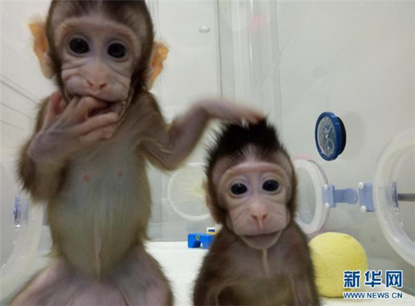 自1996年第一只克隆羊“多利”诞生以来,20多年间,各国科学家利用体细胞先后克隆了牛、鼠、猫、狗等动物,但一直没有克服与人类最相近的非人灵长类动物克隆的难题。科学家曾普遍认为现有技术无法克隆灵长类动物。中科院神经科学研究所孙强团队经过5年努力,成功突破了世界生物学前沿的这个难题。利用该技术,科研团队未来可在一年时间内,培育出大批基因编辑和遗传背景相同的模型猴。新华社发(中科院神经科学研究所提供)