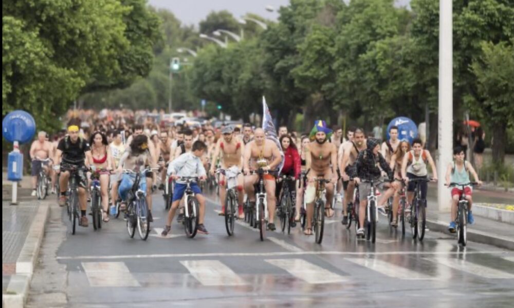 據悉,世界裸體自行車遊行活動起源於2003年,是一個國際性的可穿可不穿(cloth-optional)的自行車組織,參與者集體規劃及聚會,共同以人力交通工具(主要是自行車,也有少數滑板及直排輪鞋等)騎車,以號召人們「拒絕對石油的依賴,並且讚頌我們身體的力量與個人性」。
