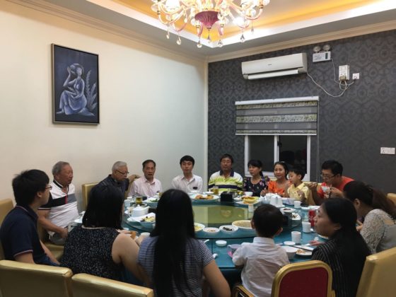 晚上,若安姐全家设宴招待我们。她老人家热涙盈眶地握着我和伟兄的手对着她在旁的儿女语重心长地说:「六十年有多了,大家能再相逢,真是缘份和福份。」