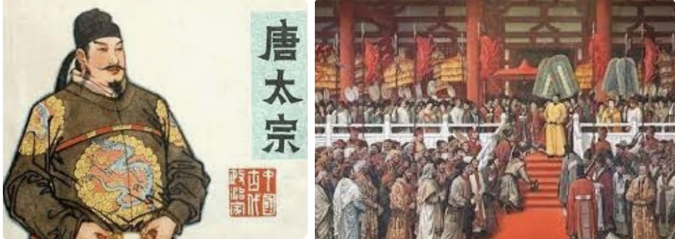 左:唐太宗李世民,右:各国使者朝拜唐皇图