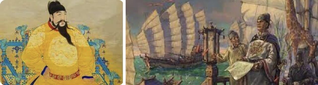左:明成祖永乐皇帝,右:明朝郑和下西洋图