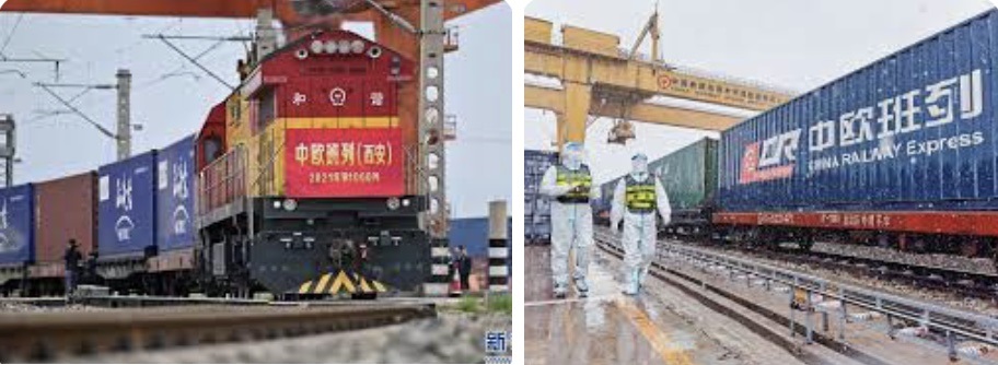 2011年3月19日,重庆开通"渝新欧"集装箱货运直达班列是中欧班列的肇始,2016年班列运营模式调整,各地线路统一品牌,称为"中欧班列"。截至目前,中欧班列已有运行线路82条,通达欧洲24个国家200个城市,2016年至2021年,中欧班列年开行数量,由1702列增至15182列。中欧班列运货时间12天,比海运25天,节省一半时间,陆运比海运风险小,对一带一路货运贡献很大。