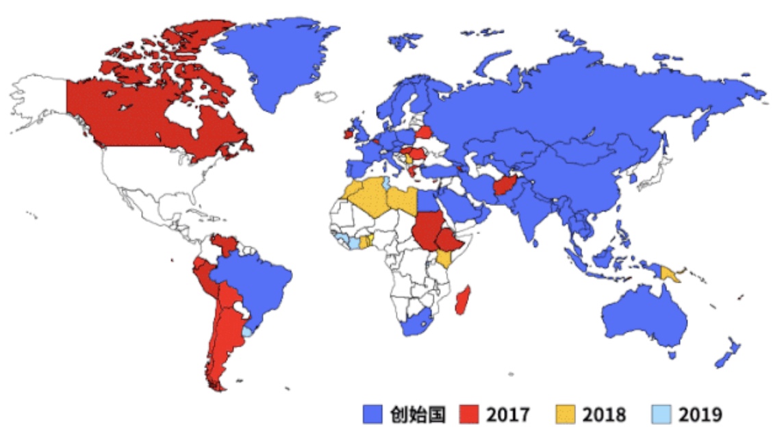 中国的一带一路倡议,很快得到了沿大陆各国和沿海岸各国的欢迎,各国政府争先恐后加入。现在已有150多个国家和地区加入。