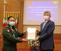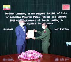 近日,中国政府向缅甸和平进程捐款仪式在内比都举行。中国驻缅甸大使陈海分别向缅甸三级和平机构、联邦停火监督联合委员会代表雅毕中将,社会福利与救济安置部部长岱岱楷,边境事务部部长吞吞楠转交年度援款,使馆杨守征参赞及缅方相关部门主管官员出席。