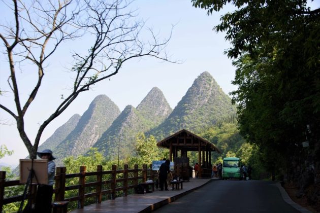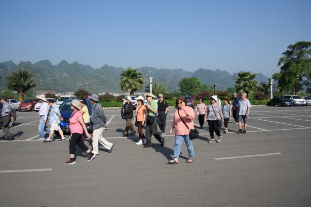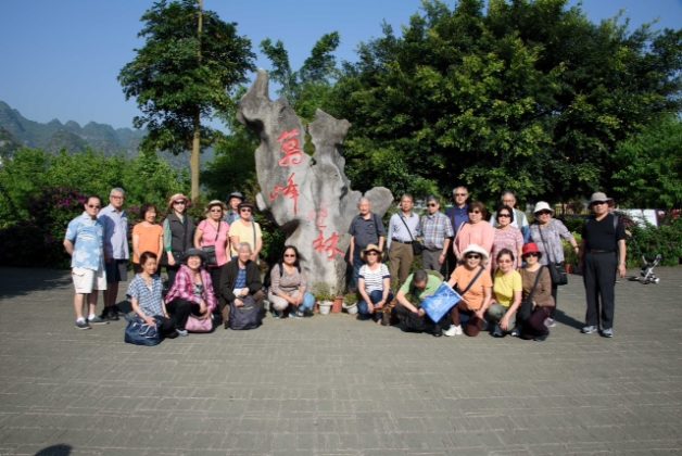 四月19日周五。同样作习,六时起床吃早餐七时四五分拖行李下楼,八时半起程。我们的导游小杨为了使我们旅途轻松点,对旅程做了稍许变动,四月20日要去的“万峯林”,准备今早先去游玩。万峯林好像是把大大小小尖尖的小山峯堆集在一起,参差错落,其间一望无际的绿田,似一幅养眼夺晴,美不胜收的自然画卷。初春百花齐放,春季麦浪滚滚,初冬产香米,冬季竹叶绿油油,是人间仙境,似天堂秀丽。赏心悦目,姿态万千,给人有似在观赏一幅秀丽的图画的感觉。