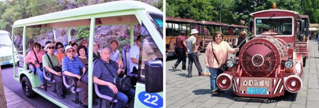 电动车从进口处每到一处美丽的景点,就会停下来让旅客照相观赏。有些停车的点,有免费摄影师为你拍照,然后钳入墜子项练中,广播中不断传出。不要以为服务周到;虽送带有本人相片的墜子项练,但另用镜框装就的端荘的相片,每张要收费人民币20元。多数人是会买的。