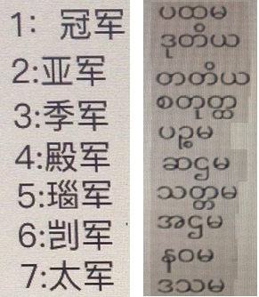学生用自己的数字做算求。老百姓做生意也用自己的数字来计算。中国每个数字都有文字,例如一(壹)。缅甸也一样,每个数字也都有文字,例如一(တစ်)。