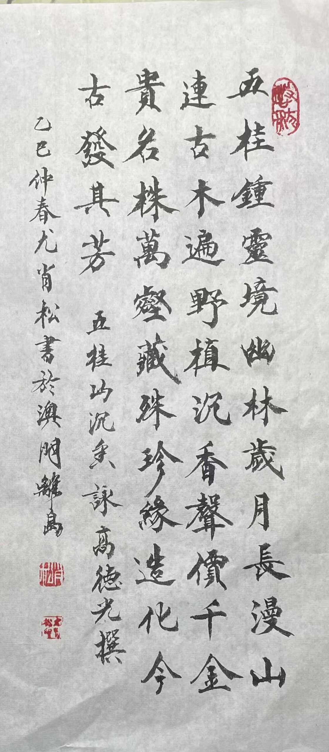 . . 華夏文明今古傳, 楚辭漢賦宋唐篇。 濠江薈萃吟風雅, 葡韻悠揚入管絃。 融滙中西相碰撞, 切磋音律共承宣。 好將世界詩歌節, 砥礪騷壇笑比肩。 书法 一〉馮利發 二〉劉北照 三〉茂松 四〉黎勝培 五〉周永騰 六〉吳錦蓮...