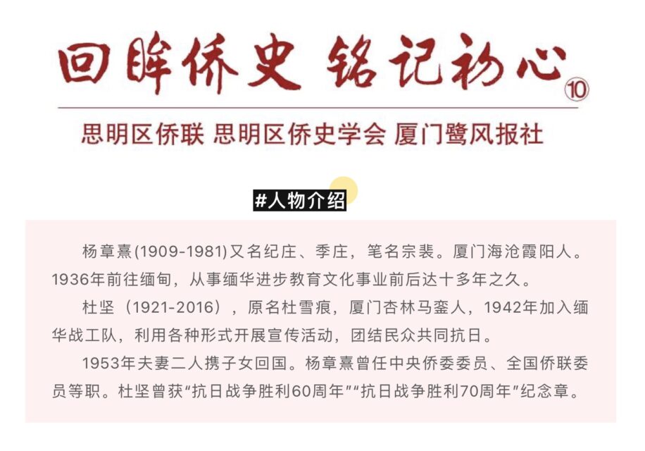 叶国治(5-3-2021)很高兴看到这些史料。很高兴知道楊章熹老師的后代的一些消息。向作者楊缅燕等问好。我是当年仰光华中、南中的学生。楊章熹是我敬重和喜愛的老師,他对缅华的民主运动、对传揚中华文化、对中缅文化教育交流都有许多贡贡献。