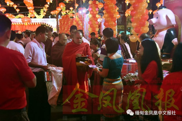 今年的锦绣唐人街盛典,缅华各大侨团、华校纷纷支起摊位,或布施餐食礼品,或举办游艺项目,或销售猪年新春小礼品。盛典吸引了众多的缅甸当地百姓前来,他们与仰光的华人华侨们共欢同乐,一同感受中华民族传统佳节——春节的喜悦。【缅甸金凤凰中文报记者 长羽 仰光报道】