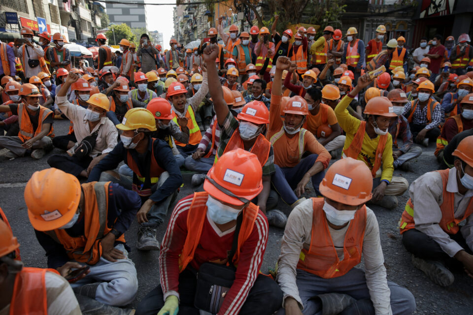 ရန်ကုန်မြို့လယ်တွင် ရာနှင့်ချီသောဆောက်လုပ်ရေးလုပ်သားများ ဆန္ဒပြနေ
