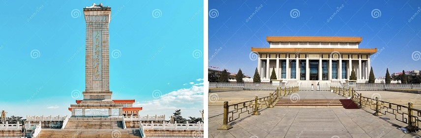 左"人民英雄纪念碑,右:毛主席纪念馆