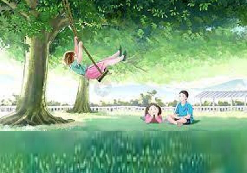 稚童追逐鞦韆樂,