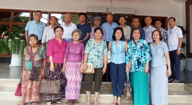 背景:有感欢迎建民、文明班友回仰光省亲之聚首。