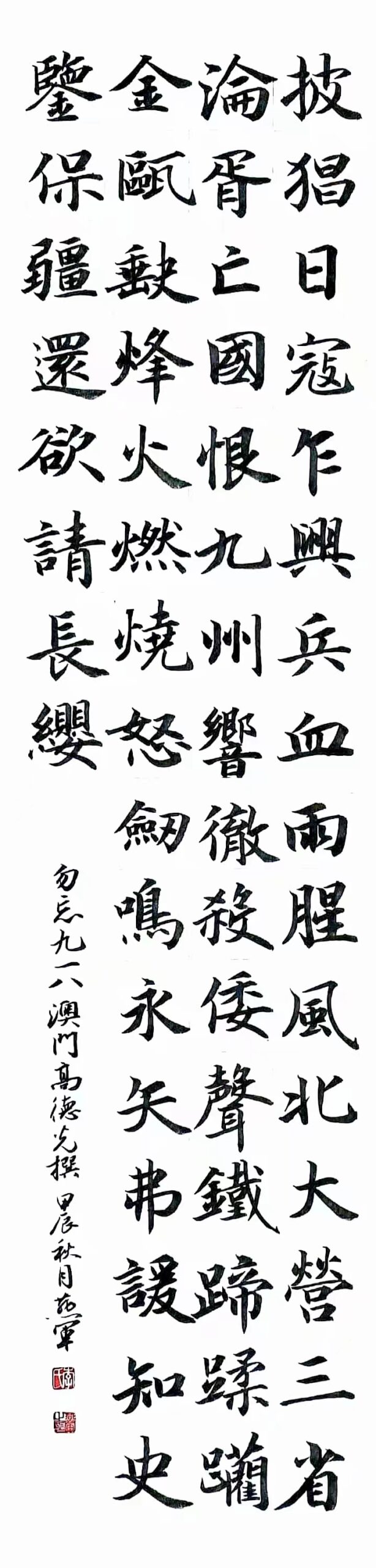 . . 華夏文明今古傳, 楚辭漢賦宋唐篇。 濠江薈萃吟風雅, 葡韻悠揚入管絃。 融滙中西相碰撞, 切磋音律共承宣。 好將世界詩歌節, 砥礪騷壇笑比肩。 书法 一〉馮利發 二〉劉北照 三〉茂松 四〉黎勝培 五〉周永騰 六〉吳錦蓮...