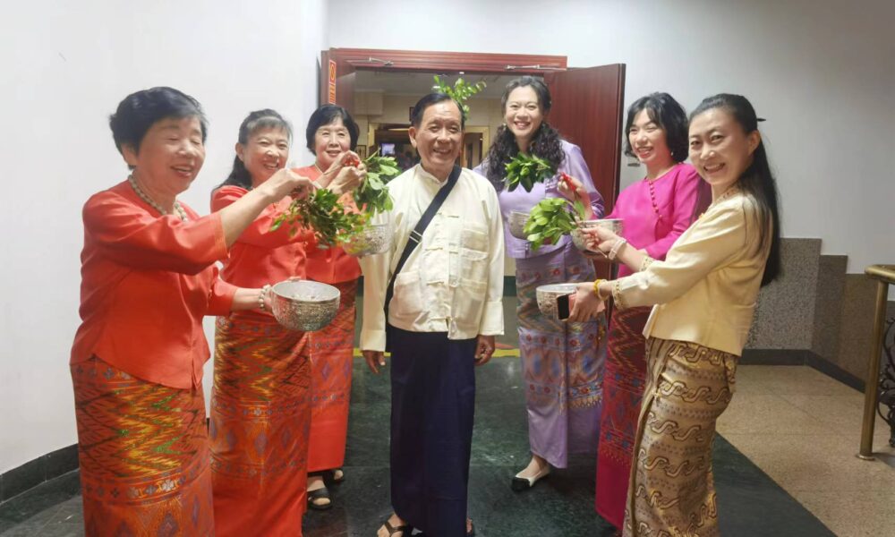 作为新人的我,第一次加入会务组工作人员行列,这份责任与喜悦一直在心头澎湃。八时许,工作人员均已陆续到位,大家各司其职,会场内外井然有序。迎宾组的胞波们身着缅甸盛装,宛如春日初绽的柳芽,婀娜多姿,站在会堂门的两侧,心底里闪烁着灿烂的火花,这是从未感受过的欢乐。她们右手捏着松树枝叶,左手端着散发着淡淡清香的银钵,准备迎接宾客们的到来。来自华大、厦大的缅甸华裔留学生、厦门六区及周边城市的缅甸归侨、侨眷们350余人纷至沓来,我们以传统的方式用松树枝叶蘸着香水,向来宾们泼洒象征着吉祥如意的幸福水。久违的胞波们互祝幸福、安康!会场内外欢声笑语,气氛热烈温馨,摄影师不时捕捉着精彩的瞬间,定格下一张张美好的回忆。九时许,嘉宾们陆续到场,市委统战部、市侨联及缅联会的新老会长分别致辞,希望缅联会越办越好,为“胞波”们提供一个温馨美好的家园。随着音乐的响起,在老会长沉浸式的指挥下,缅联会文艺队以饱满的热情以中缅文合唱了《鹭岛胞波之歌》及《我和我的祖国》,为泼水节嘉年华揭开了丰富多彩的文艺演出序幕。“冰冻三尺非一日之寒”,每个周末,老会长坚持组织缅联会文艺队教唱缅甸歌曲,用歌声述说着对故土的眷念;用缅语歌颂强起来的祖国。使大家形成团结互助的凝聚力,形成同心共进的强大合力。加入缅联会青委会舞蹈队仅仅半年,为了筹备《紫檀花礼物》舞蹈,婉映和宝珠两位阿姨不辞辛苦,每周耗费大量的私人时间进行编导和雕琢。在这短短的几个月里,我不仅知晓了不少缅甸习俗,也认识了一群可爱的胞波兄弟姐妹们。每当《紫檀花礼物》的乐曲响起,仿若自己就是那婀娜娉婷的缅甸少女,长裙摇曳,如仙飘于魂牵梦绕的万塔之邦。在音乐中聆听故土的呼唤,在舞蹈中领悟游子的眷恋。……