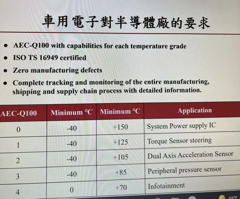 上圖是車用电子对半導体的要求