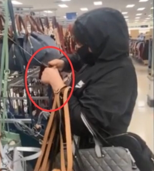 羅德里格斯說,短短10分鐘的時間,她就發現有三個人在偷東西,其中包括一名女子。視頻顯示,該女子身穿黑色套頭衫,戴著黑色口罩,不斷用鋼絲鉗剪斷包包上面的安全線,在手臂上掛滿了包,大搖大擺地走出商店,沒有遇到任何攔截。當時她身邊有好幾個圍觀者在拍攝視頻,該女子無動於衷。