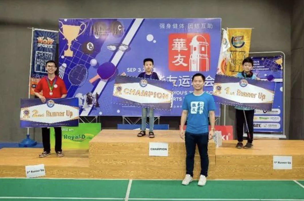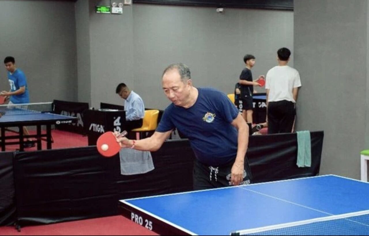 大厅场地内,可爱的小朋友欢快蹦跳,生气勃勃的少年们跳跃嬉闹,成熟健硕的青年们正在挥拍热身,更有几位老当益壮的年长者,穿着各自的队服,在热议交谈着,全体华中校友的蓝色运动衣着,更似蓝海一片,让我赏心悦目至极……。我心潮澎湃,腹里念叨着:Wow ,寂静已久的缅华侨界娱乐活动,复苏有望了!