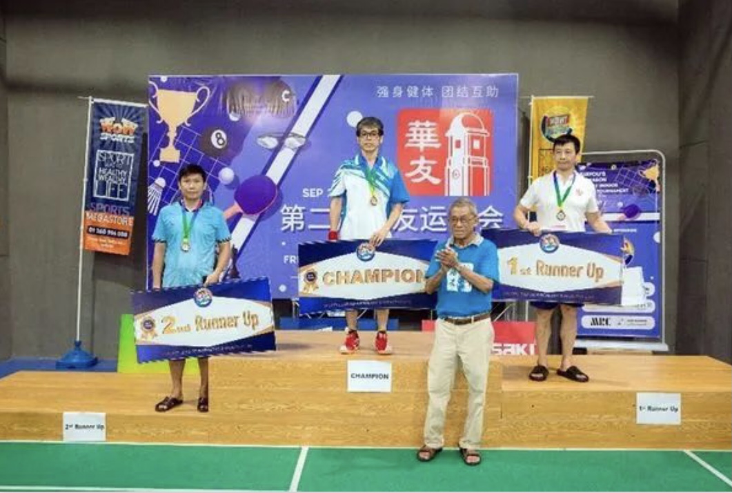 完全是出自于真诚鼎力支持我们兄弟《华友》活动的由衷,不在乎赛绩结果会是如何,我们南友断然参加了这场比赛活动。我本人亦为鼓动校友们的士气,更为以实际行动表达认同南、华友的兄弟情,明知不济,不怕献丑,也参加了乒乓球赛。第一局,参赛者可能知道要与他过招的是我这位没水准的人,所以缺席没来,我自然不用比赛就赢了第一场,赢就是赢,不管怎么赢,心里总是高兴,真受鼓舞。晋级第二场,与一位年轻人对打,三盘皆输,心感惭愧。其实我本来就是运动的门外汉、想当年在《南洋中学》上初中时,考体育,选跳高摔得我胸闷得要窒息,令同学们笑话……。