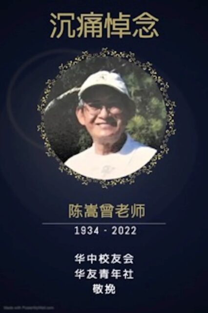 2022年2月25日,惊悉陈嵩曾老师不幸溘然长逝于美国佛罗里达州。噩耗传来,个个无一不陷于深深地悲恸之中。
