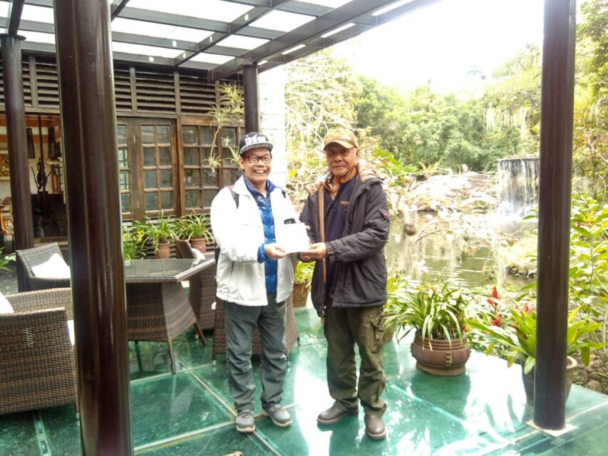 2018年,首届中国咖啡师职业技能大赛海南分区赛会场设在热带花园。郑文泰先生按照农场原侨办主任杜燕生的提议给我打了邀请电话,我即刻定了启程机票。在大会舞台上,我首次采用1957年在合口区开始研学的花瓣吹奏技艺,演奏了《春天来到太阳河畔》。大会因为暴雨而终止,郑文泰先生陪着我站在屋檐下开心地聊了一个多小时。我们分享着一个为“保护人类赖以生存的环境”,一个为“保护人类非物质文化遗产”而在不同岗位上付出艰辛努力换来的成果,虽然时间长短、涉及领域和贡献大小不一定相同,但是意义确实非凡。我们都用心体验了对方的深情厚谊和心心相惜的情感。我们期待雨后天晴,明天会更好。
