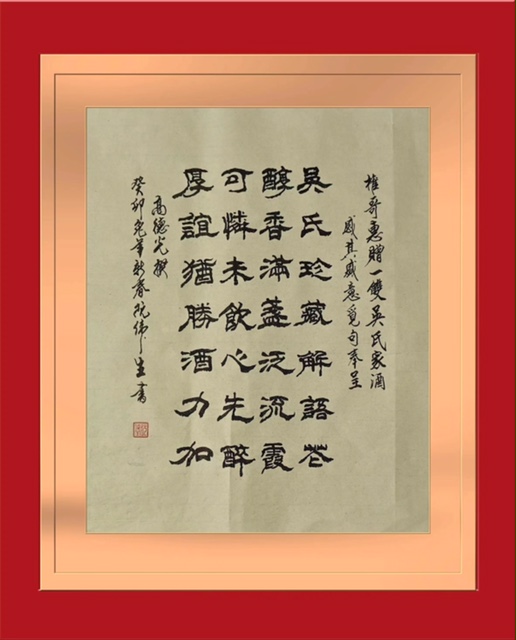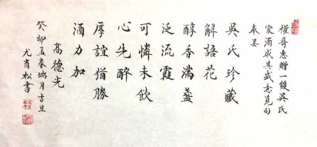 转载请注明:《吳在權老師惠贈一雙吳氏家酒感其盛意覓句奉呈(文/德光,书法/一)阮偉生,茂松,周永騰,黎勝培,尤肖松)》 复制链接