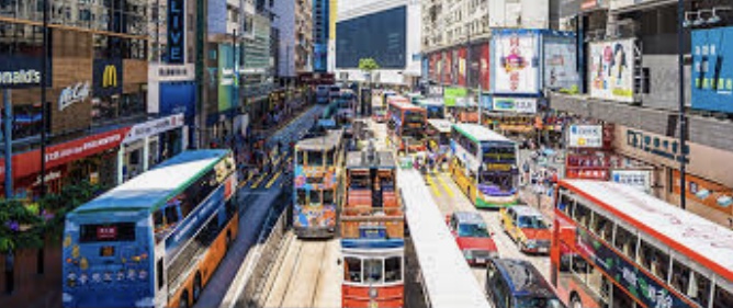 香港中环车水马龙热闹景象