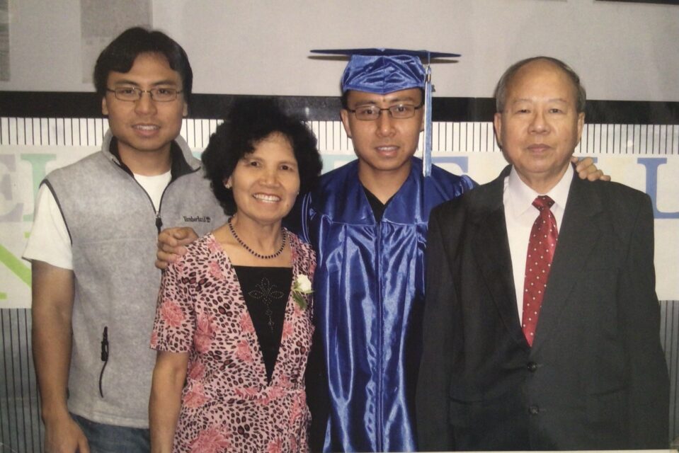 1979年,黄月琴的二哥黄绍彬合家,从缅甸移民美国,五年连续居住后,1984年,合家成功加入美籍,同时帮助母亲和兄弟姐妹,申请移民美国。我们当时在云南陆良华侨农场教书,很快收到美国驻北京大使馆的通知,本以为我们很快能够移民美国,后来得知兄妹关系移民申请,必须排期等待约十年。摆在我们面前的道路有两条,继续畄在农场等十年,或申请移居香港等十年,我们必须选择其中一条。我年轻的时候,单枪匹马,选择当中文教师,轻而易举。现在有了家庭,要考虑夫妇工作和生活,同时要考虑两个孩子的前途。