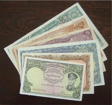 上世紀四、五十年代緬甸通行的貨幣,也叫錢,有价值。那時生活水準不高,一、二拾分錢的小吃都能小飽,口袋里有幾塊錢就可買到好些物品。一般人的工資幾拾元已算不錯,百多元可以說是好工資了。市面上基本流動的貨幣為一元、五元、十元、二十元,很少用到百元鈔。那年頭多數家庭中人口都不少,用於房租、基本生活用品等開消后,所剩無幾,一般只能做到收支平衡而已,並無多少儲蓄,是不容易見到和存有百元大鈔的。