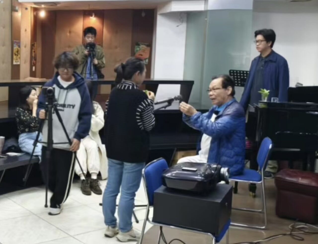 深圳大学传播学院拍摄队慕名前来录制纪录片《一叶知秋》。