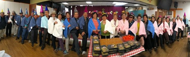 南友会给每一位寿星赠送了一条大毛巾。他们把浴巾披在肩上,拍照留念。