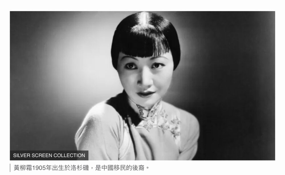 黄柳霜是第三代华裔美国人和洛杉矶本地人,14岁时首次在1919年的电影《红灯笼》中作为临时演员出演,但不久后她在1922年的电影《海逝》中首次担任主角。她后来出演了60多部电影,包括无声电影和第一部彩色电影,而且也曾出演过电视和戏剧作品,并在她长达数十年的职业生涯中成为著名的时尚偶像。