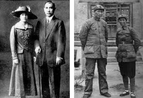 左: 孙中山与宋庆龄, 右: 毛主席与贺子珍