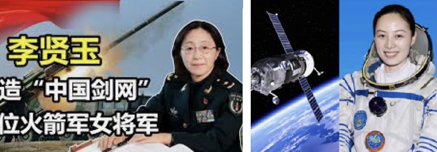 左:女导弹武器军事家李贤玉, 右: 女航天员王亚平
