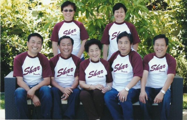 前排左起:老六志良、老二志超、媽媽、老四志文、老五志仁。