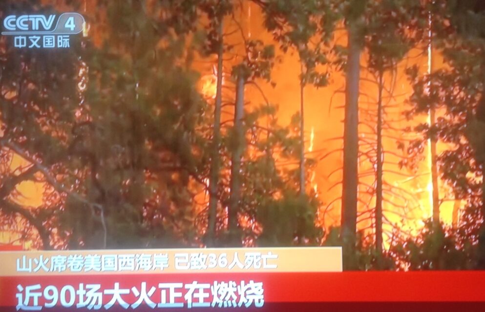 整个加州处身火海之际,北邻俄勒冈州和其北华盛顿州也同时暴发山林大火,这样整个美国西海岸火海连片,身无完肤。到目前为止,已有近90场林火,期中3场范围破记录,死亡36人,失踪数十人。三万多消防员日以继夜奋力灭火,未能有效控制火势。9月14日,川普总统急忙前来加州视察火情。整个势态史无前例,非常严重。