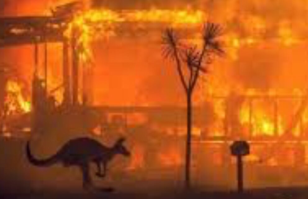 南半球也不平静,近几年来,澳大利亚惨遭林火肆虐,一年比一年加重,光是林中千种动物,已被烧死五亿,损失惨重,国宝级袋鼠和考拉也不能幸免,澳洲名城雪梨也烟灰龙罩,朝不保夕,呜呼哀哉。